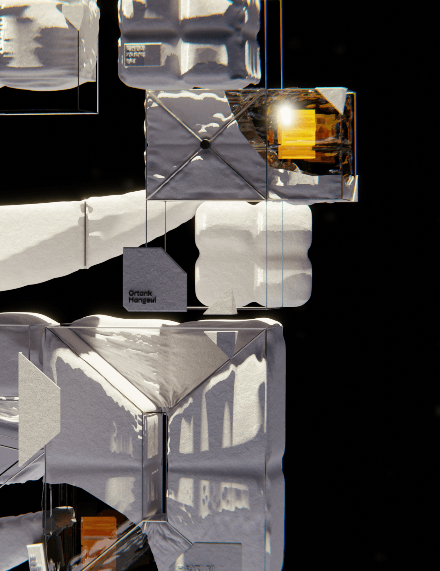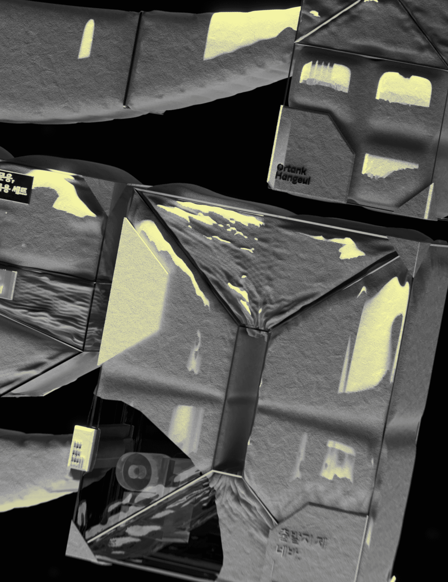 오흐탕크 한글 텍스트 / 디스플레이는 지오매트릭 그로테스크 계열의 서체로 기하학적 형태의 한계를 탐구한 결과물